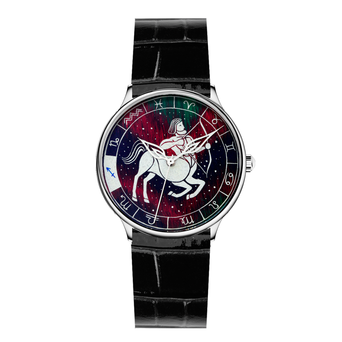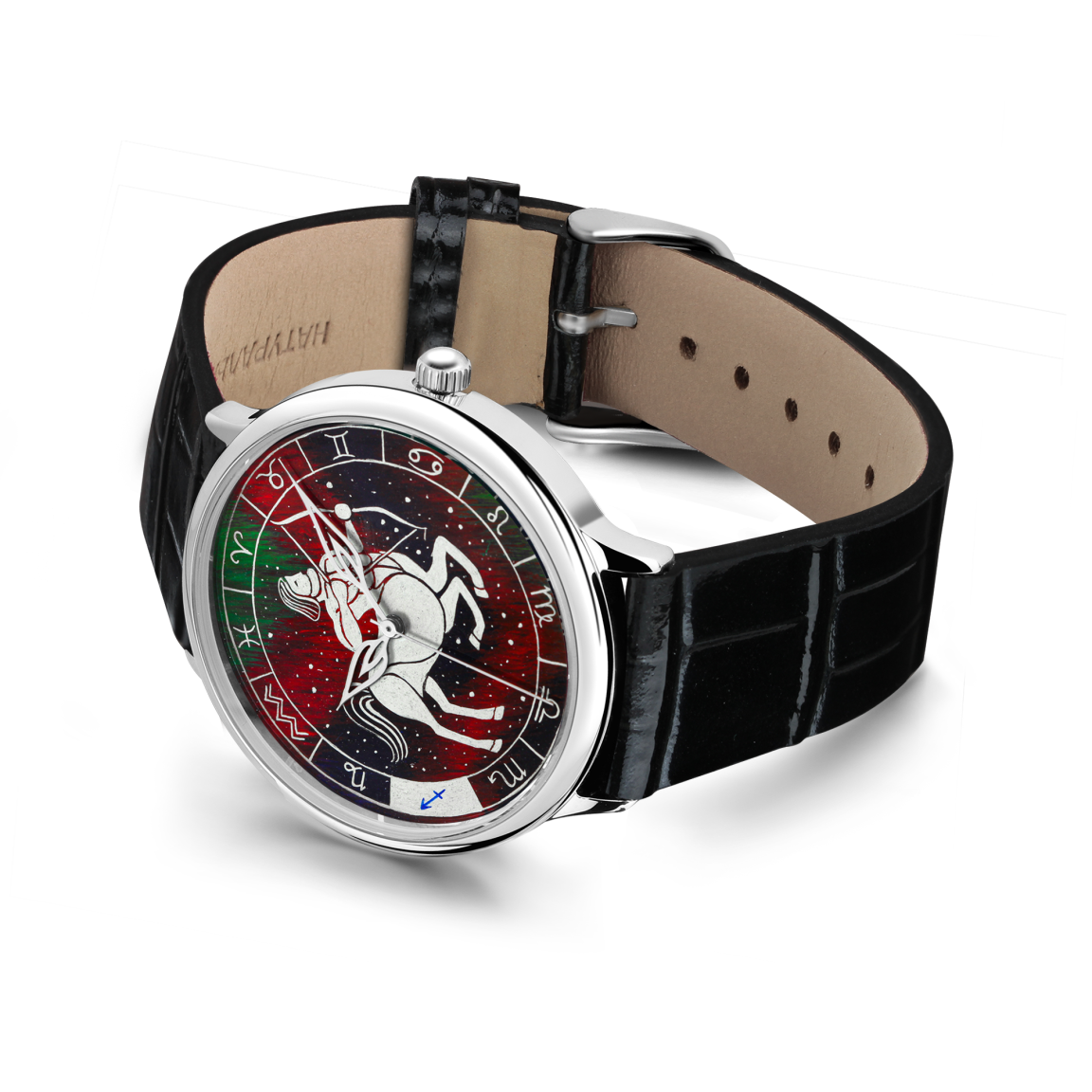 Мистический мир Зодиака в коллекции наручных часов, где каждый уникальный циферблат - миниатюрная картина, вдохновлённая символикой знаков зодиака и искусно нанесённая вручную в технике палехской лаковой миниатюры. Мы перенесли 12 созвездий знаков зодиака, которые с древности являлись инструментом для определения времени и времён года и были способом отражения космического порядка в человеческой жизни, на наши изделия - наручные часы - приборы, измеряющие неподвластное время, подчинённое законам числа 12. Пусть изображение знака зодиака станет верным талисманом на вашем запястье, сопровождающим вас каждую секунду времени.