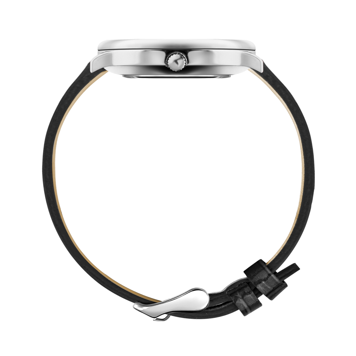 Ремешок из натуральной итальянской кожи с имитацией крокодила оснащён быстросъёмными шпильками для лёгкой замены без дополнительных инструментов и классической застёжкой, позволяющей быстро отрегулировать его по запястью.