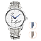 Лаконичный циферблат олицетворяет собой белый лист бумаги, на котором Владимир Семёнович когда-то оставил памятный рисунок, автопортрет, совмещённый с автографом. Очень часто, оставляя автограф, он добавлял пожелание «добра», умело вмещая в коротком слове огромныйсмысл.