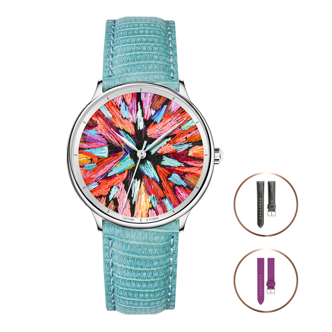 Коллекция Этника стала результатом кропотливого труда угличских часовщиков и мастера по вышивке Владимира Кузнецова. Он украсил часы самобытными и безумно детализированными фактурными работами. Когда нити переливаются на свету, миниатюрные картины становятся особенно прекрасны. Благодаря таланту угличского мастера циферблаты часов не просто заиграли красками и приобрели необычный дизайн, а стали настоящими произведениями искусства. Владимир Кузнецов занимается вышивкой более 20-ти лет и является настоящим профессионалом своего дела. Он стал автором проекта «Угличское шитьё» и обладателем президентского гранта. Сегодня Владимир возрождает традиции шитья, возникшие в Угличе ещё в XVI веке. Мы по-настоящему гордимся, что в совместно с Владимиром удалось создать надёжные часы, оригинальный дизайн которых будет ежедневно радовать своих обладательниц.