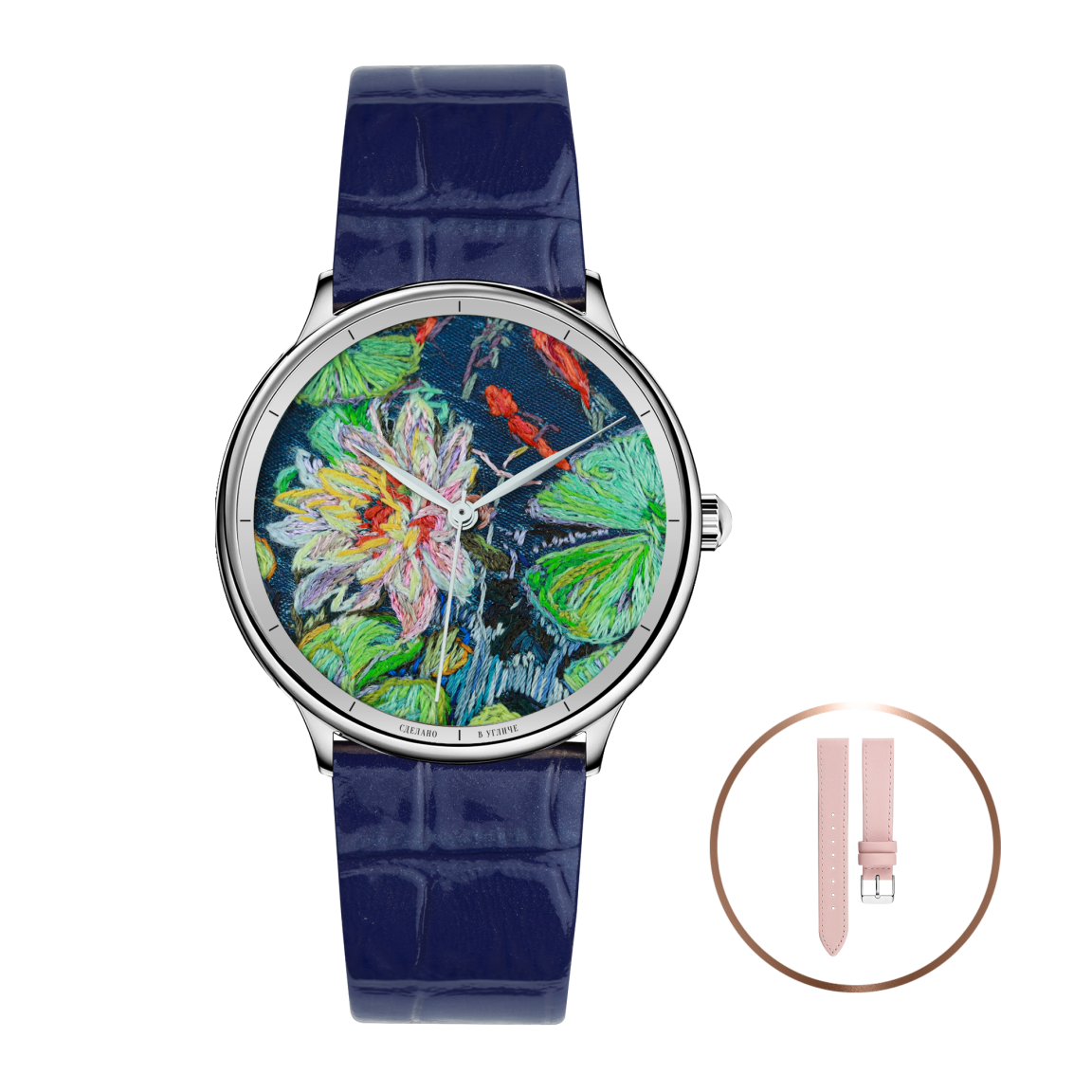 Коллекция Этника стала результатом кропотливого труда угличских часовщиков и мастера по вышивке Владимира Кузнецова. Он украсил часы самобытными и безумно детализированными фактурными работами. Когда нити переливаются на свету, миниатюрные картины становятся особенно прекрасны. Благодаря таланту угличского мастера циферблаты часов не просто заиграли красками и приобрели необычный дизайн, а стали настоящими произведениями искусства. Владимир Кузнецов занимается вышивкой более 20-ти лет и является настоящим профессионалом своего дела. Он стал автором проекта «Угличское шитьё» и обладателем президентского гранта. Сегодня Владимир возрождает традиции шитья, возникшие в Угличе ещё в XVI веке. Мы по-настоящему гордимся, что в совместно с Владимиром удалось создать надёжные часы, оригинальный дизайн которых будет ежедневно радовать своих обладательниц.
