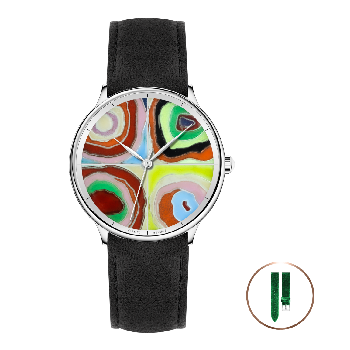 - Поскольку циферблаты изготавливаются вручную в различных техниках декоративно-прикладного искусства, возможны небольшие отличия от представленных на фото циферблатов (в деталях, оттенках цветов или линиях). Каждые часы уникальны!