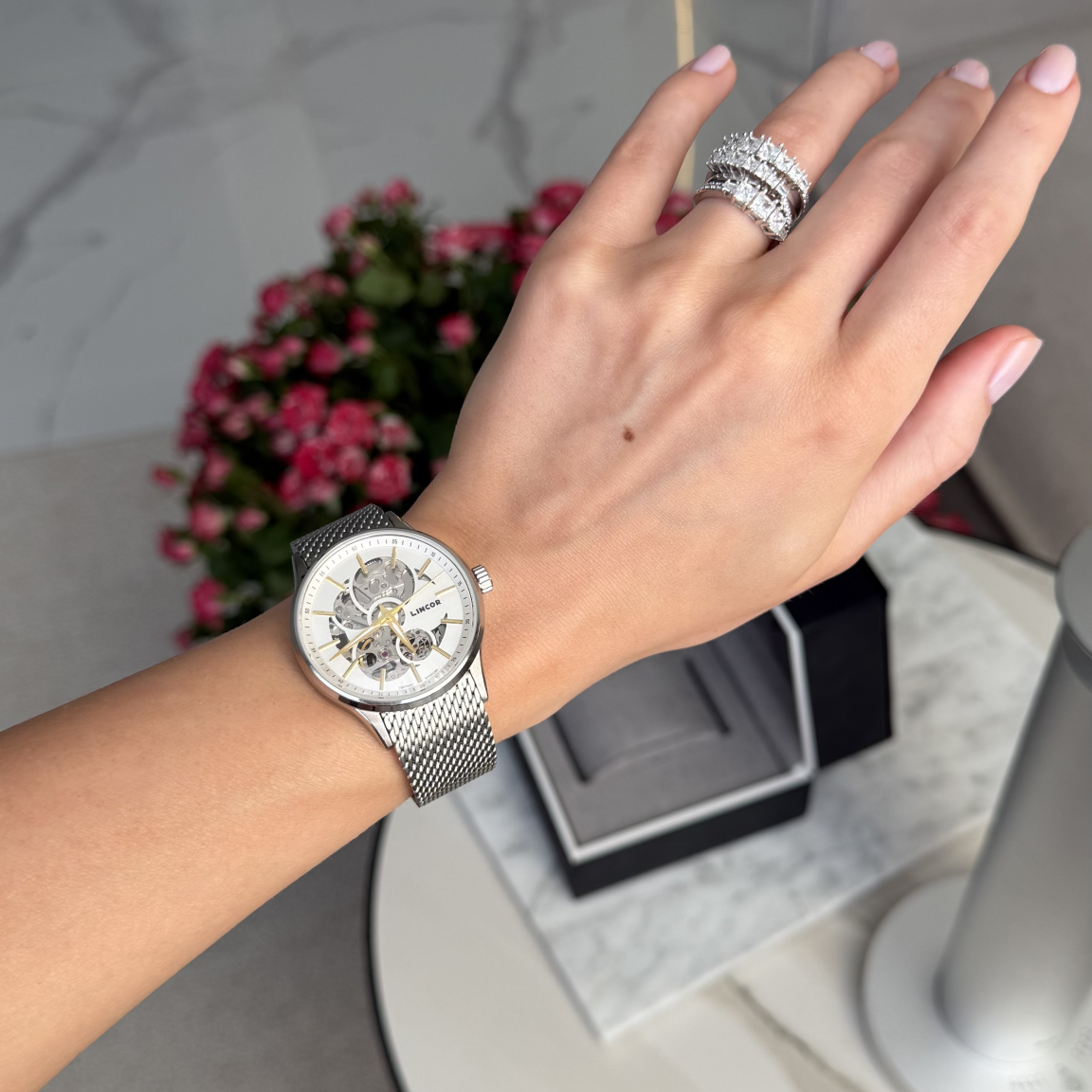 Очень красивые часы. Понравился дизайн, стальной циферблат переливается изыскано, приятное тиканье. Спасибо !