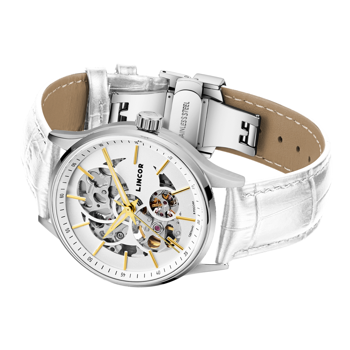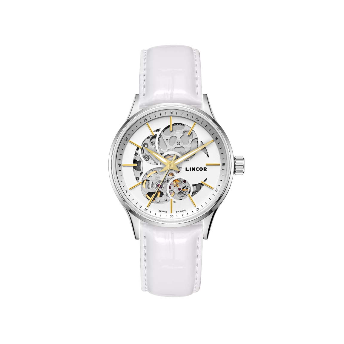 Женские механические часы сочетают в себе классический современный дизайн, практичность и надежность. 36 миллиметровый корпус, как и браслет миланского плетения, изготовлен из устойчивой к коррозии нержавеющей стали 316L. Повышенная водонепроницаемость 5 АТМ и устойчивое к появлению царапин сапфировое стекло гарантируют долговременную работу часов, а прозрачная задняя крышка и резной циферблат с накладными индексами демонстрируют работу японского механического механизма Miyota 8N24 с функцией автоподзавода и запасом хода 35 часов, обеспечивая идеальный баланс между неподвластной времени красотой и часовым искусством.
